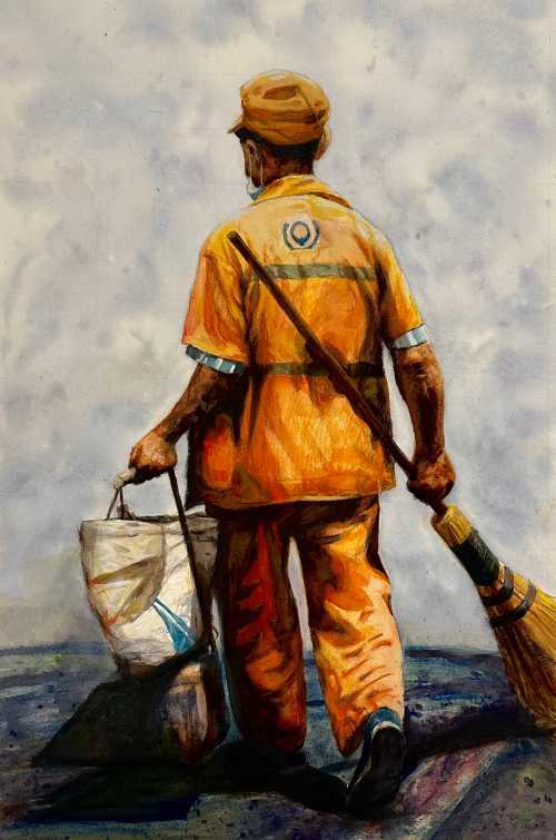 范宝怡 《“画说”工务人》 53x76cm 指导教师:刘广滨、陈亚宗