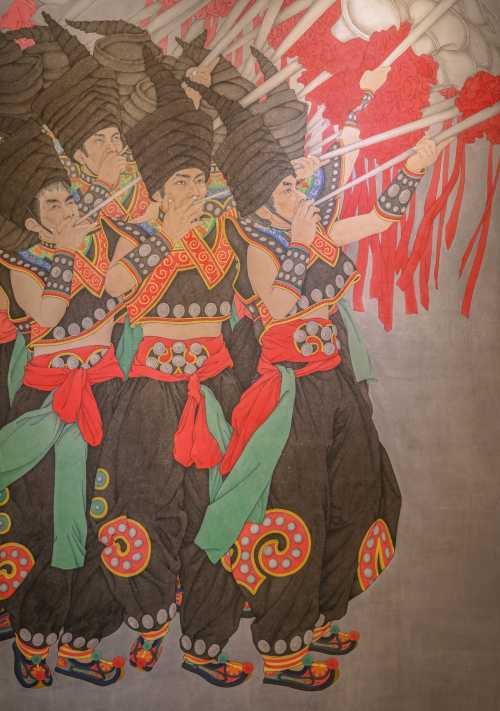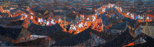 一等奖 绘画2103 刘栋 《迎客》 70cmX230cm 指导教师:龚为、谢瑞