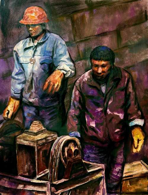 二等奖 董春艳 《矿工兄弟情》75×75cm 指导教师:刘广滨、段凝