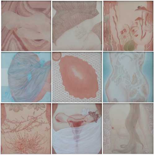 一等奖 绘画2101班 张舒雯 《痕》 50×50cm×9 指导教师:熊晓翠