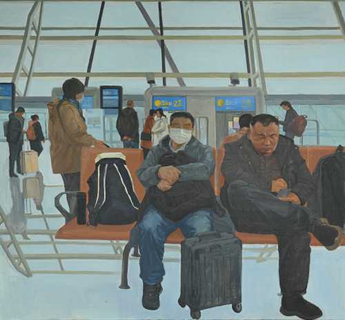 绘画2102班 黎舒琴 《还是等下一趟吧》 150×130cm 指导教师:陈建江