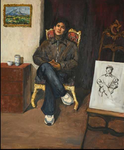 绘画2104班 何涛 《熏年》 100×120cm 指导教师:刘斌、程宣睿