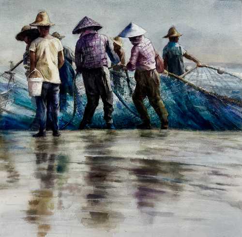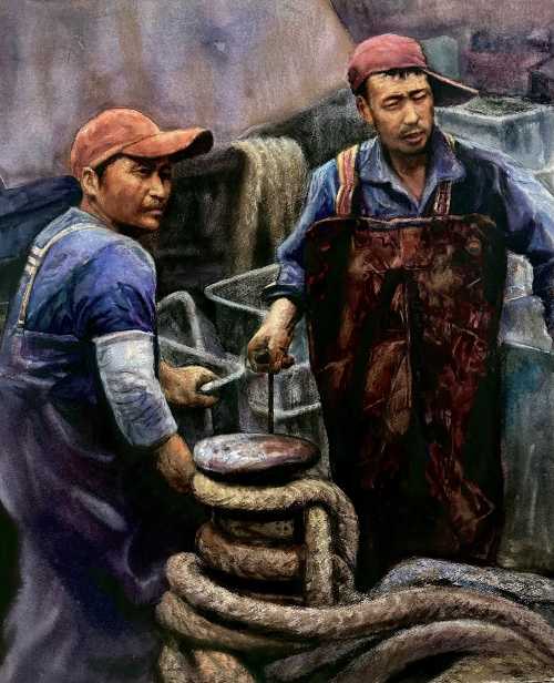 唐万峰 《渔民》 56x76cm 指导教师:刘广滨、陈亚宗