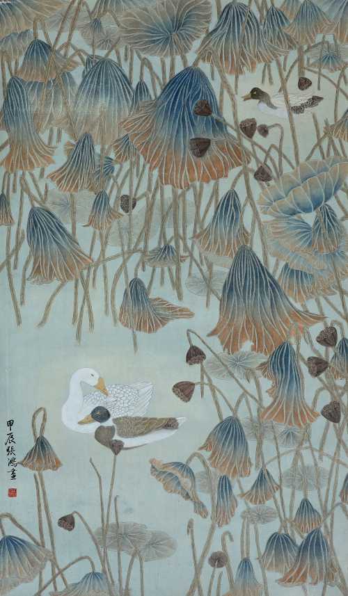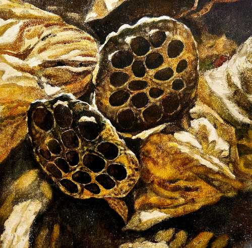 绘画2101班 张鸿 《留得枯荷听雨声》 170×100cm 指导教师:熊晓翠