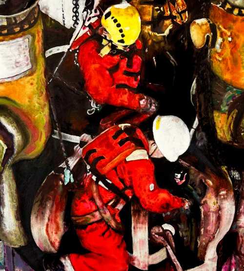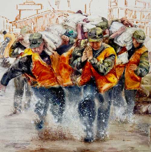 薛成鸥 《抗洪英雄》 76x76cm 指导教师:刘广滨、段凝