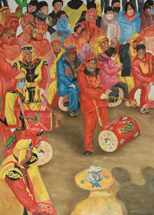 绘画2103班 陶雨若 《社火·浓艳风情》 140×100cm 指导教师:龚为、谢瑞