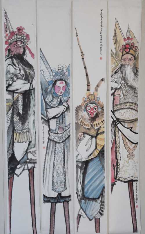 二等奖 绘画2101班 苏鑫 《步云高跷》 240×30cm×4 指导教师:熊晓翠