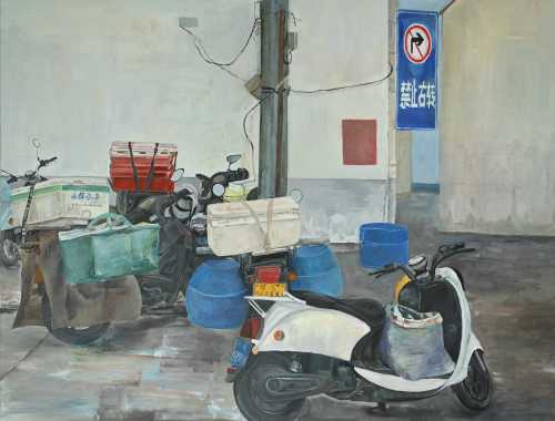 绘画2105班 贺晨 《禁止右转》100×130cm 指导教师:袁志伟