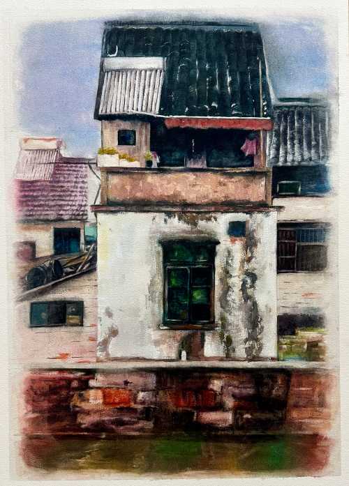 二等奖 绘画2105 王凤桐 《窗与楼》 30cm×40cm×9 指导教师:袁志伟