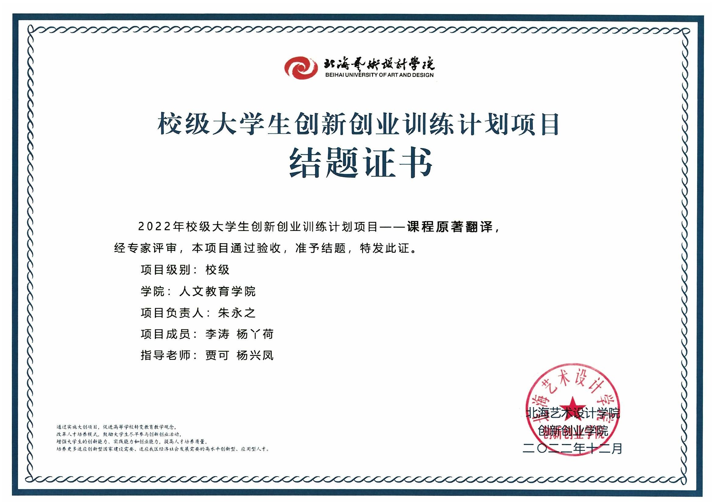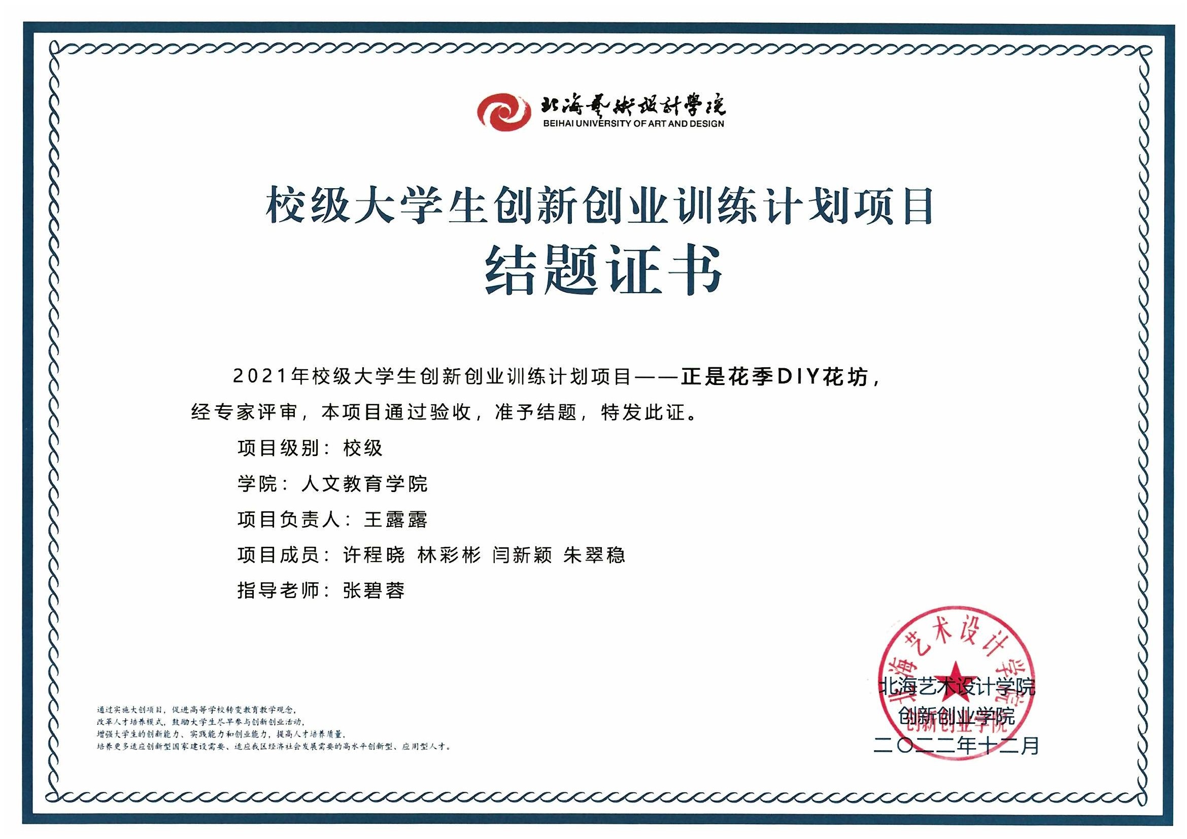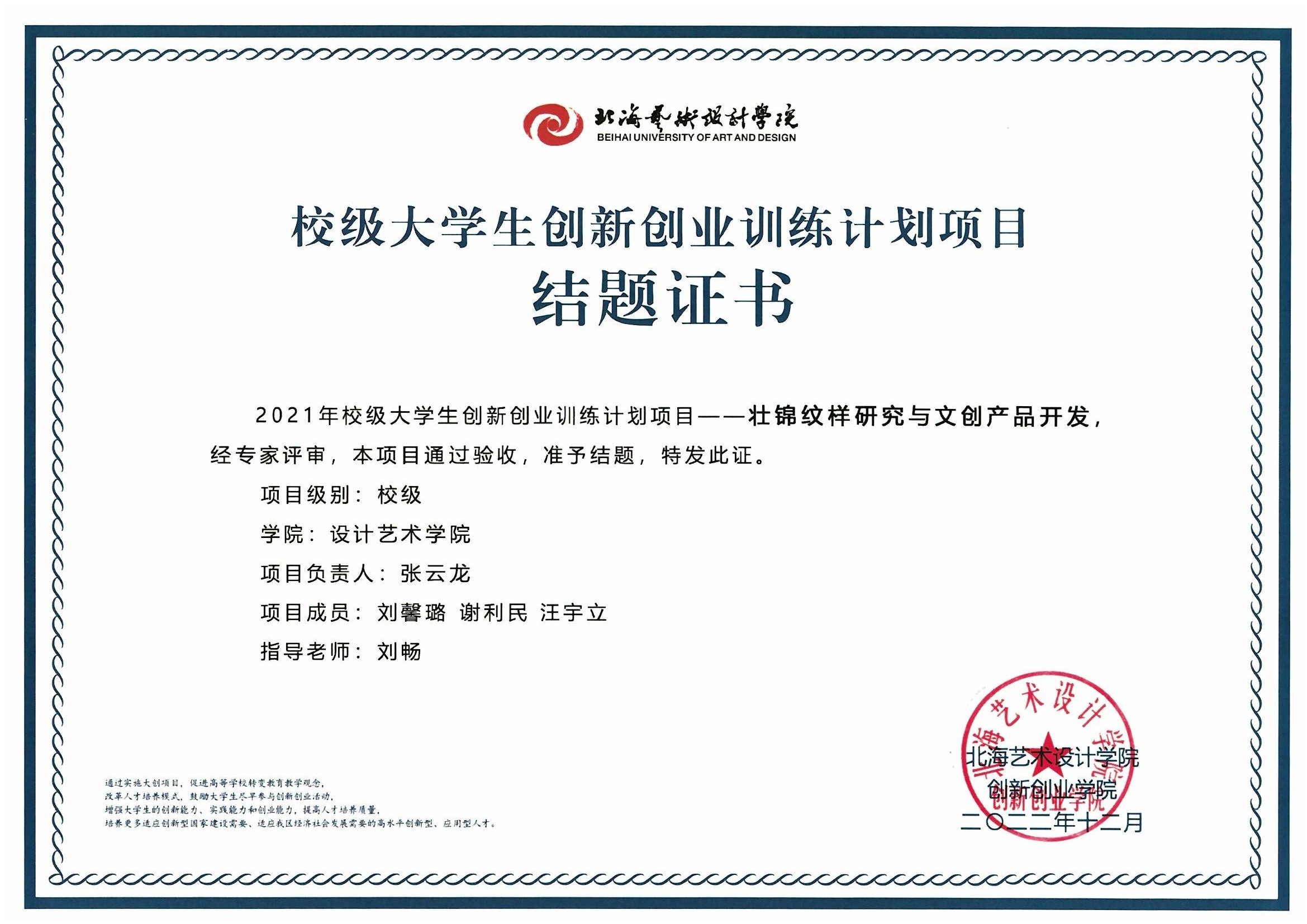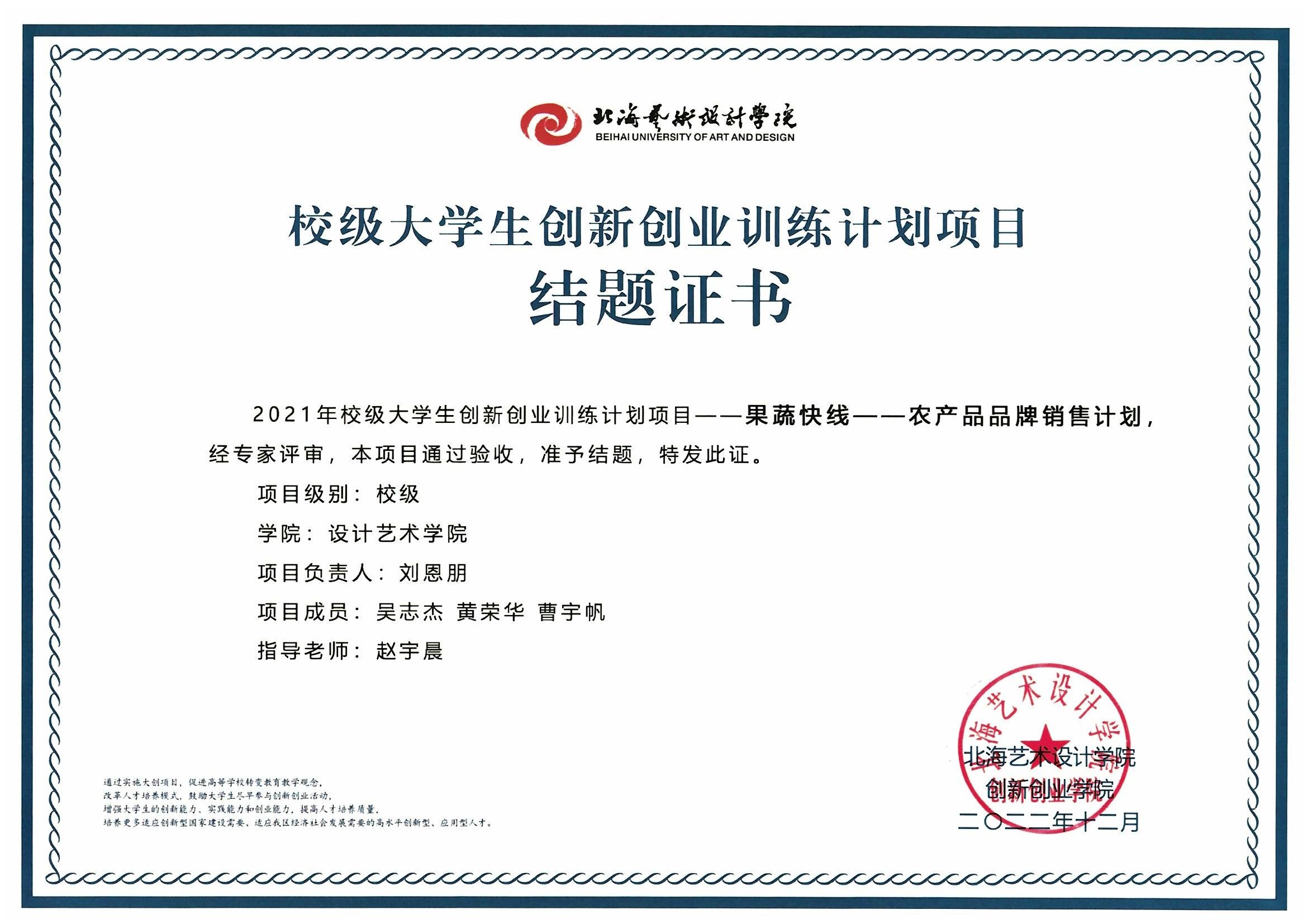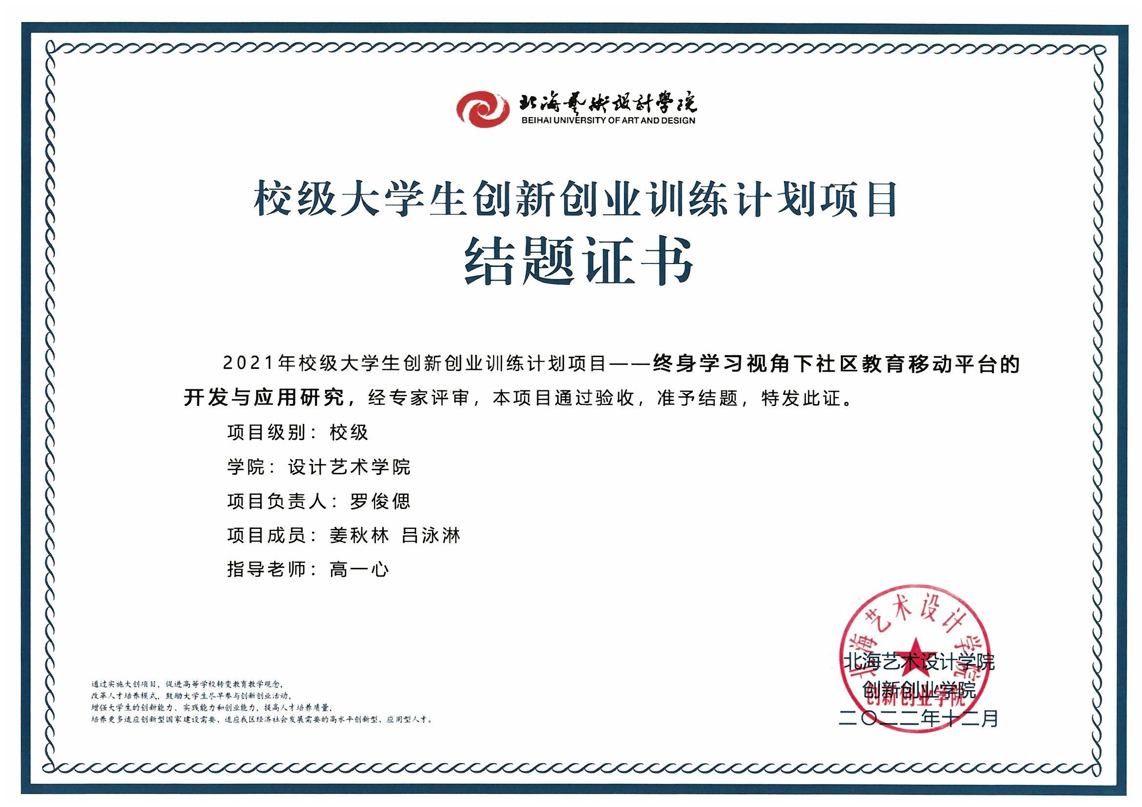 北海艺术设计学院第七届中国国际“互联网+”大学生创新创业大赛广西赛区获奖证书