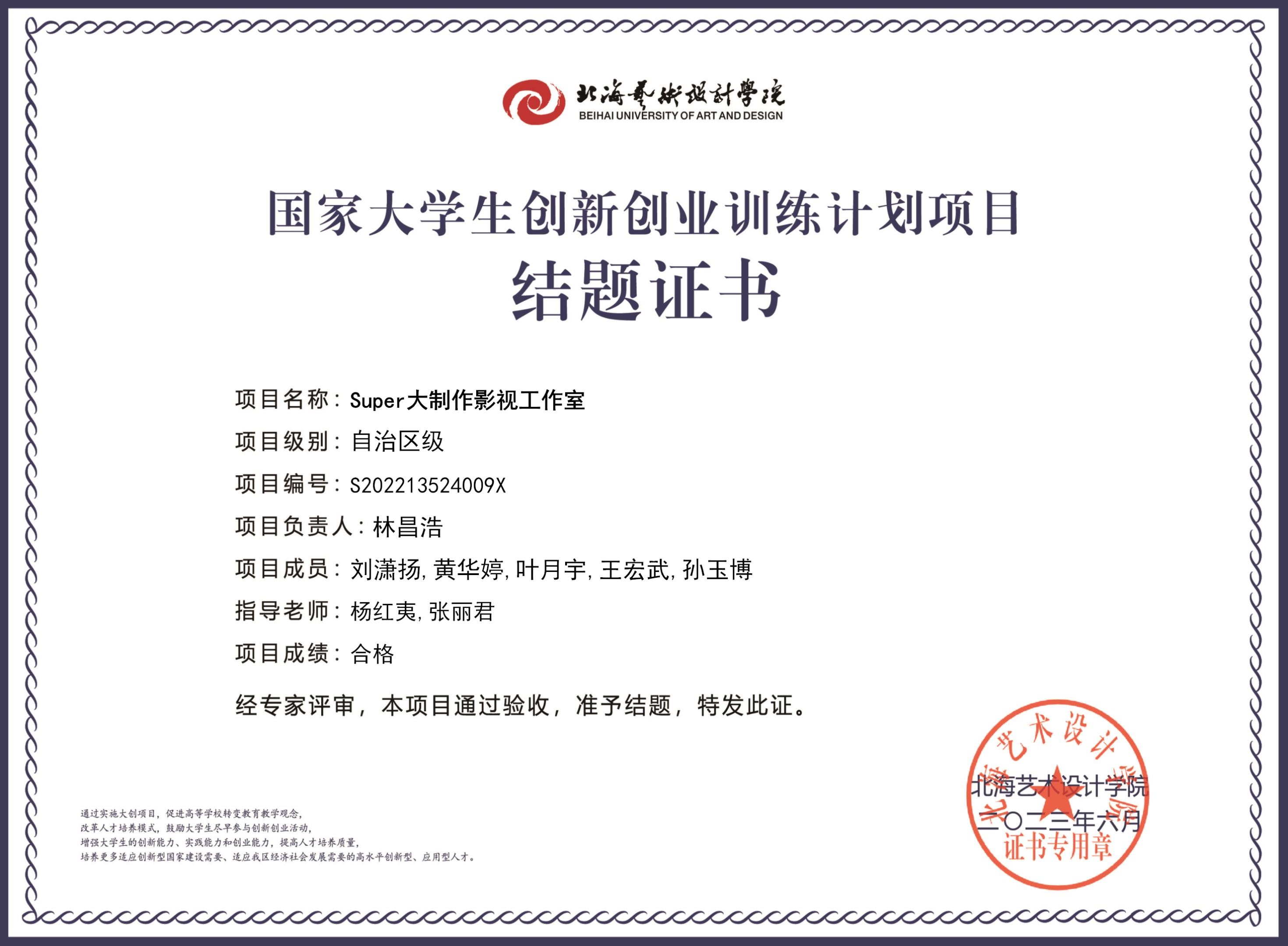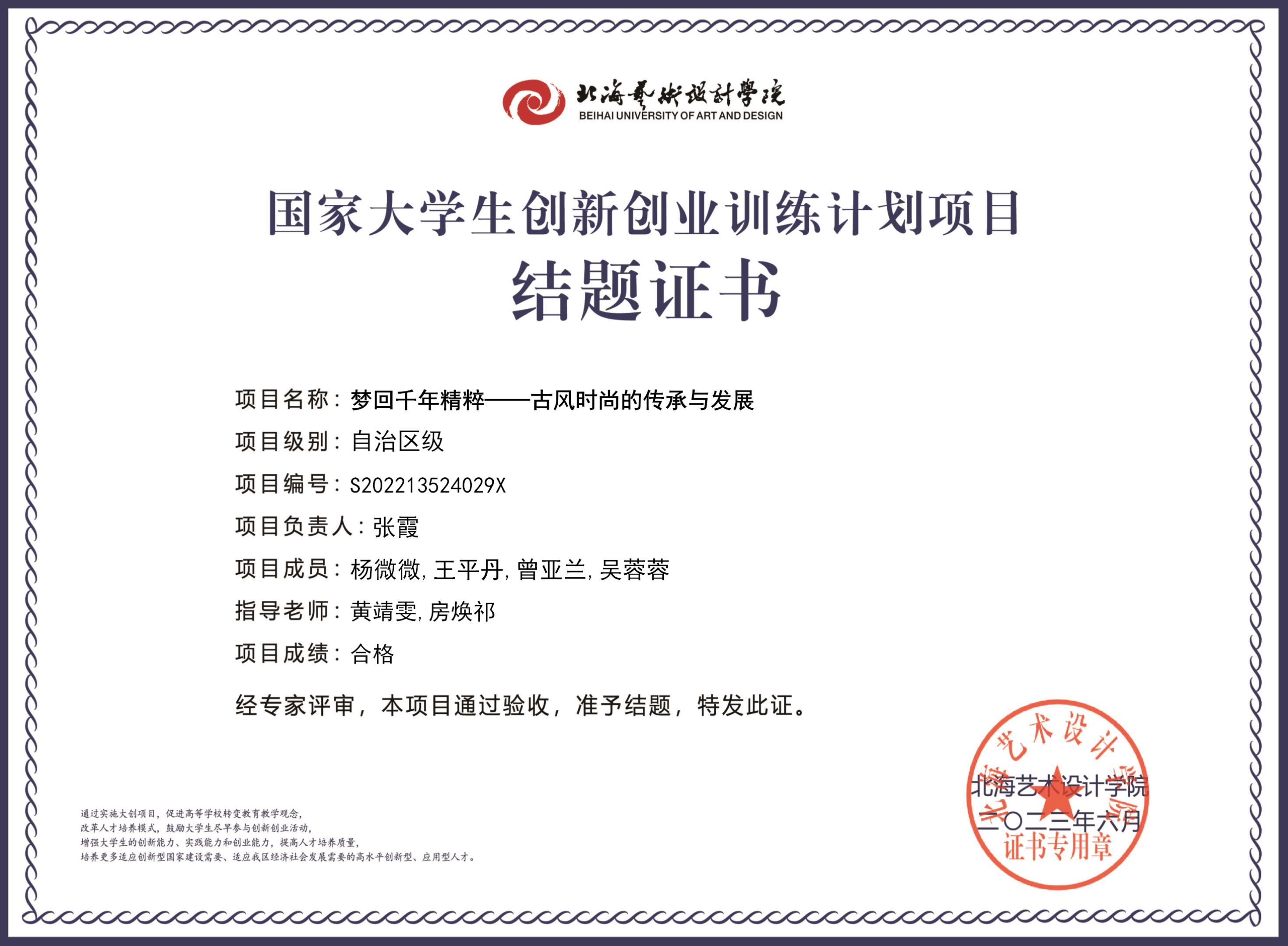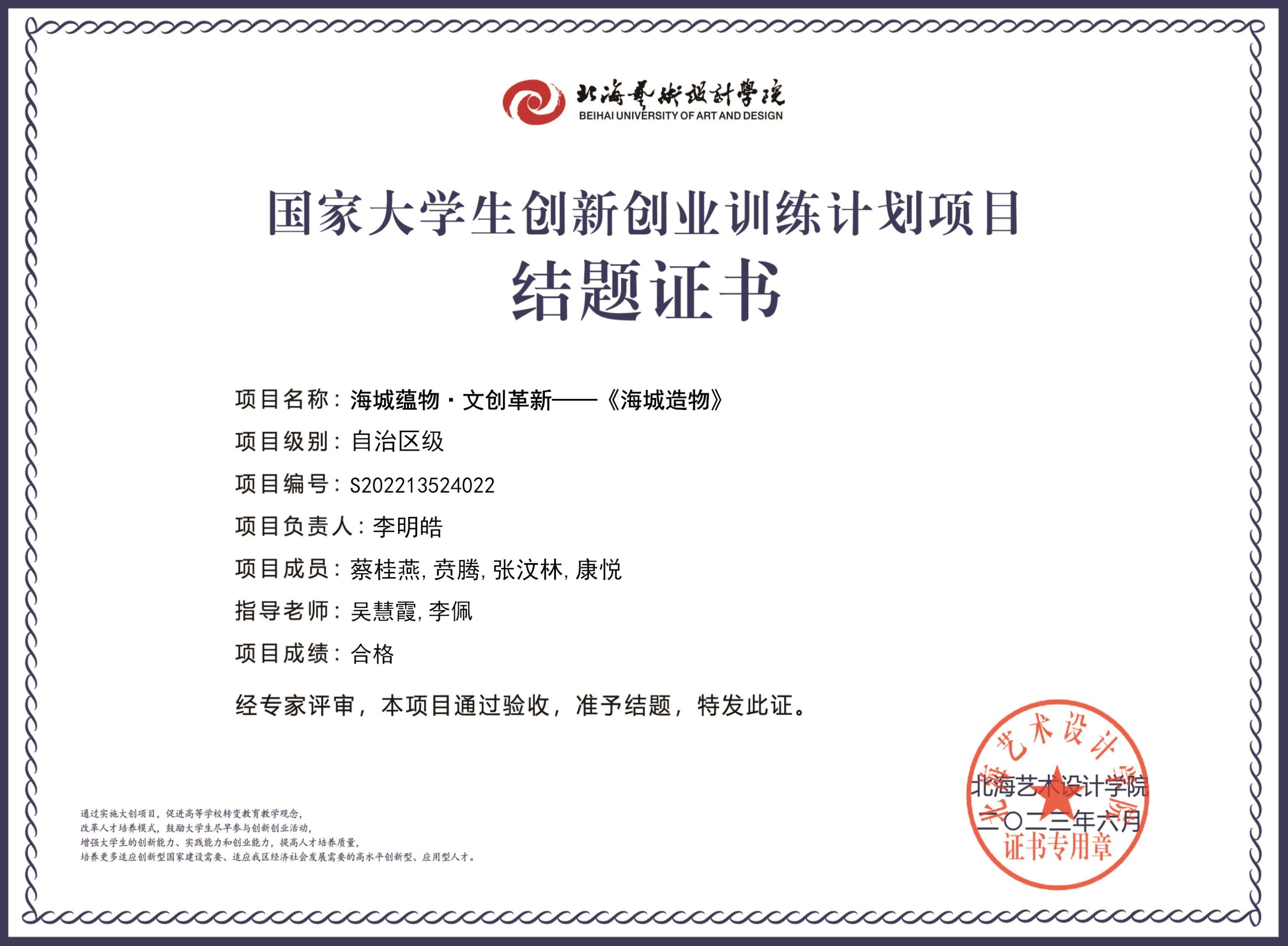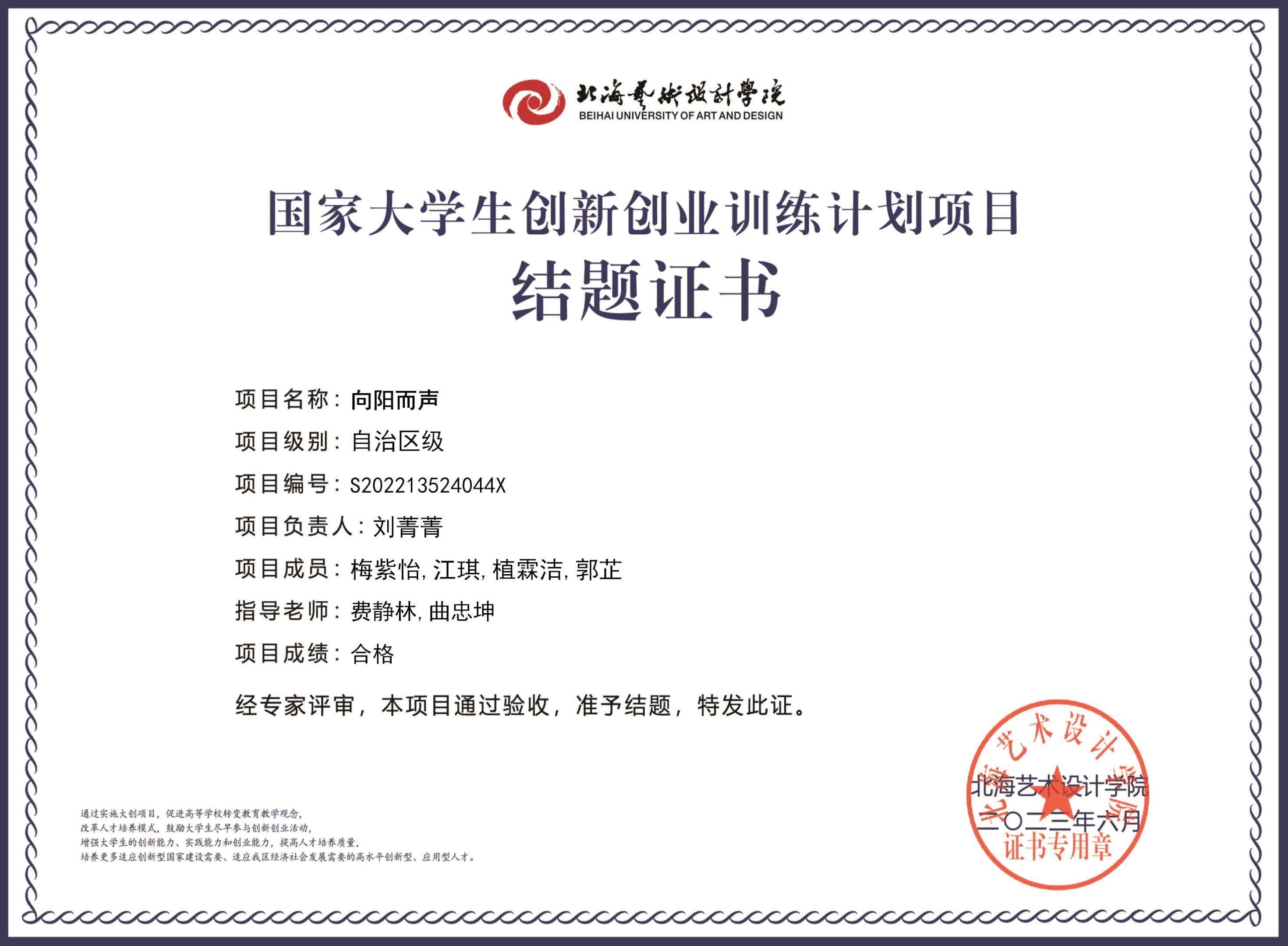 2023年大创项目结题证书(2022立项)