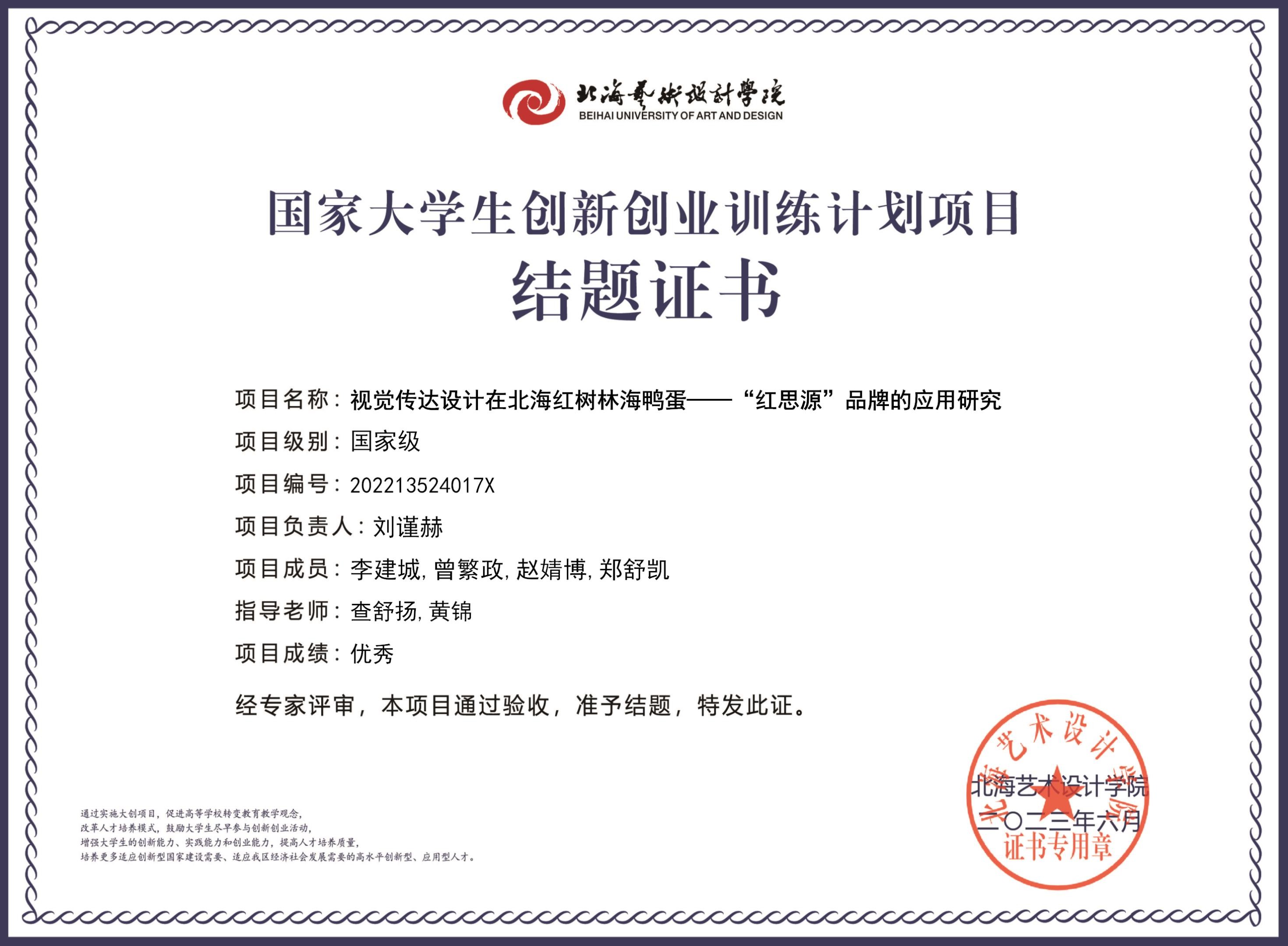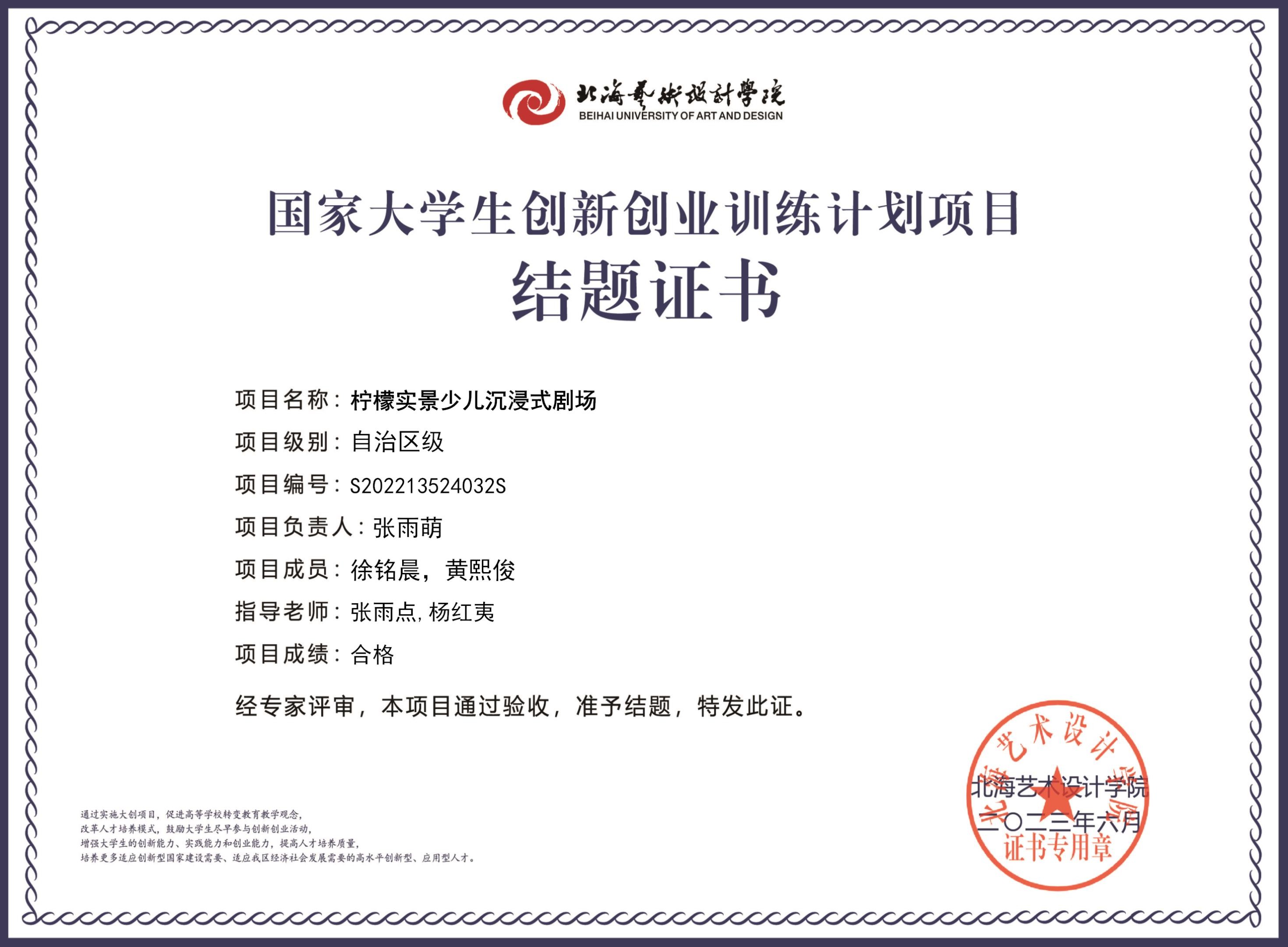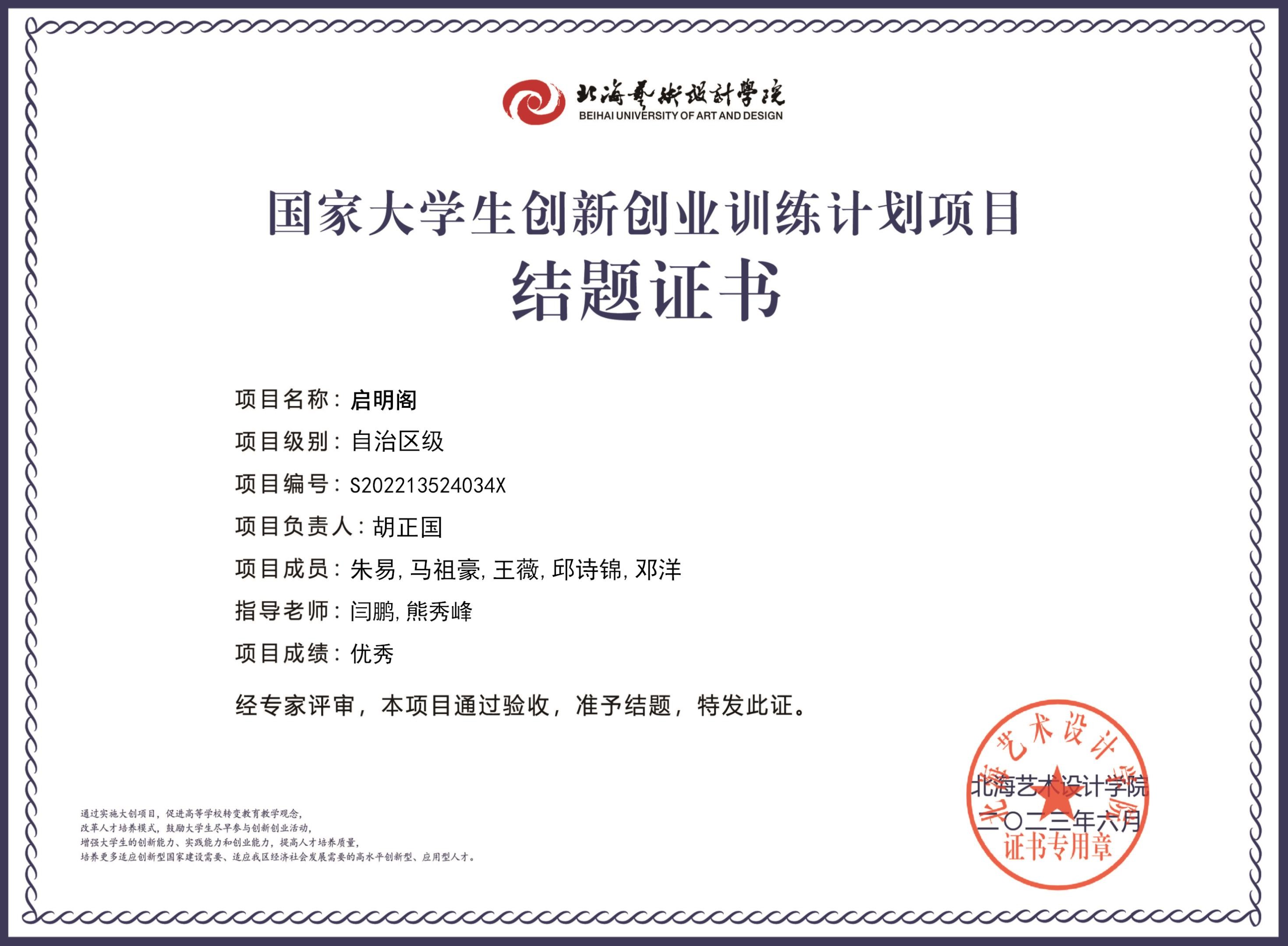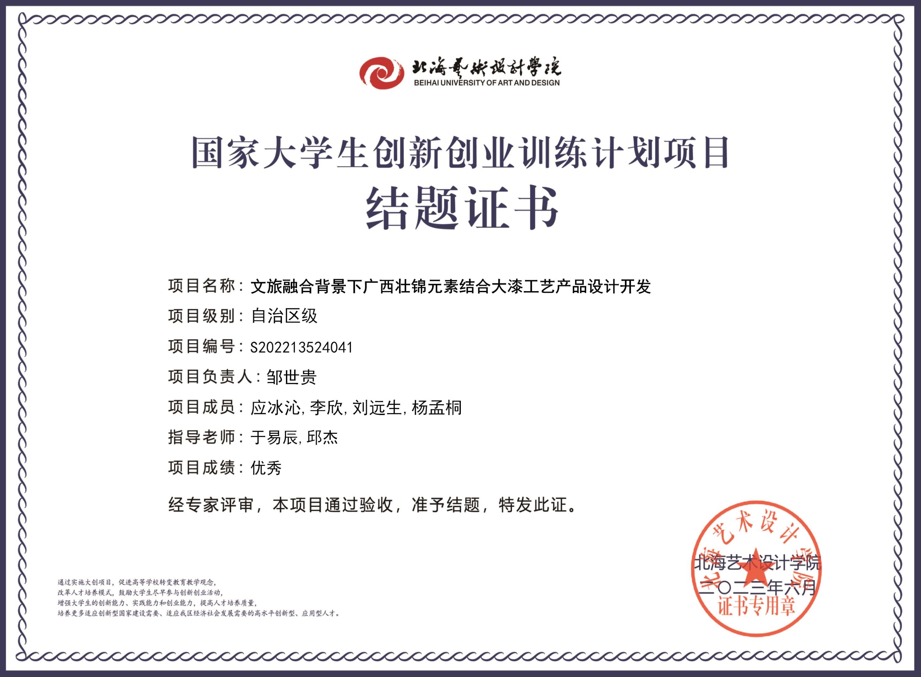2023年大创项目结题证书(2022立项)