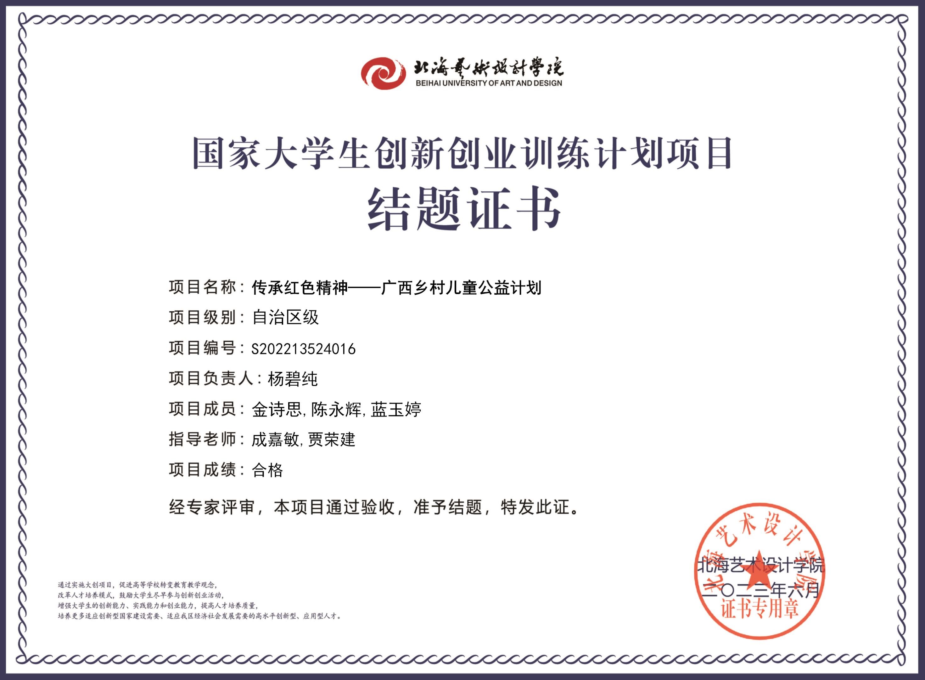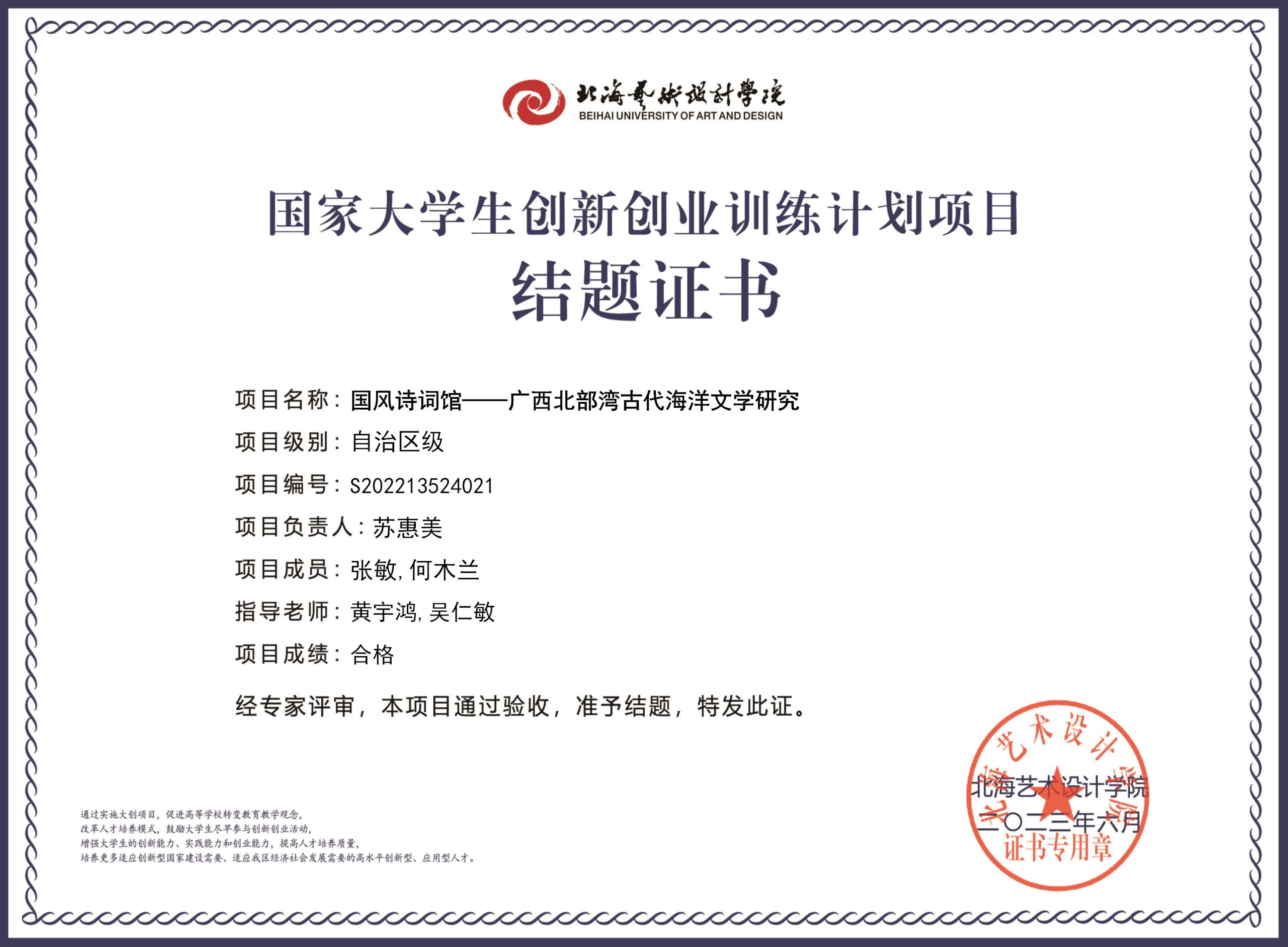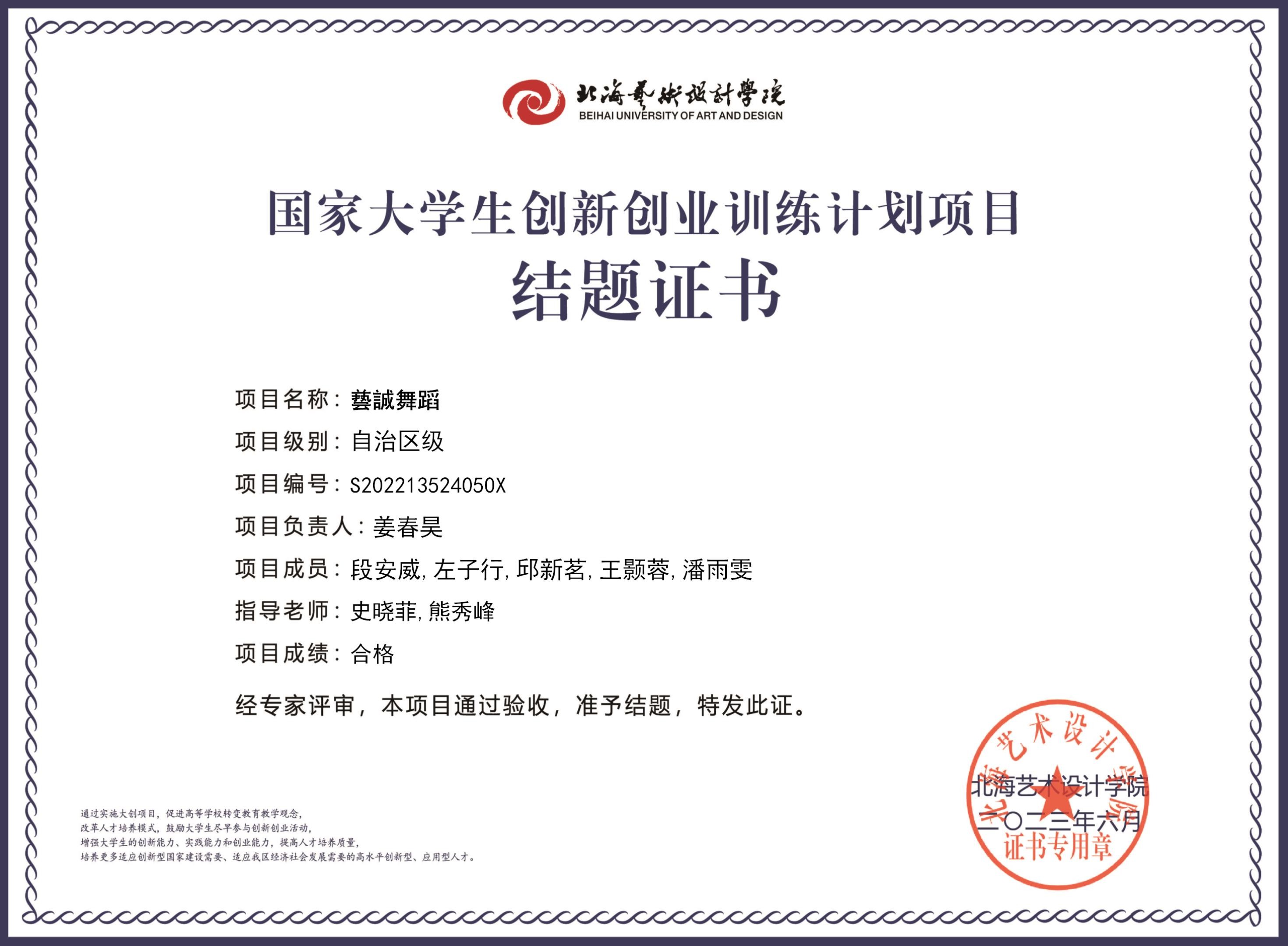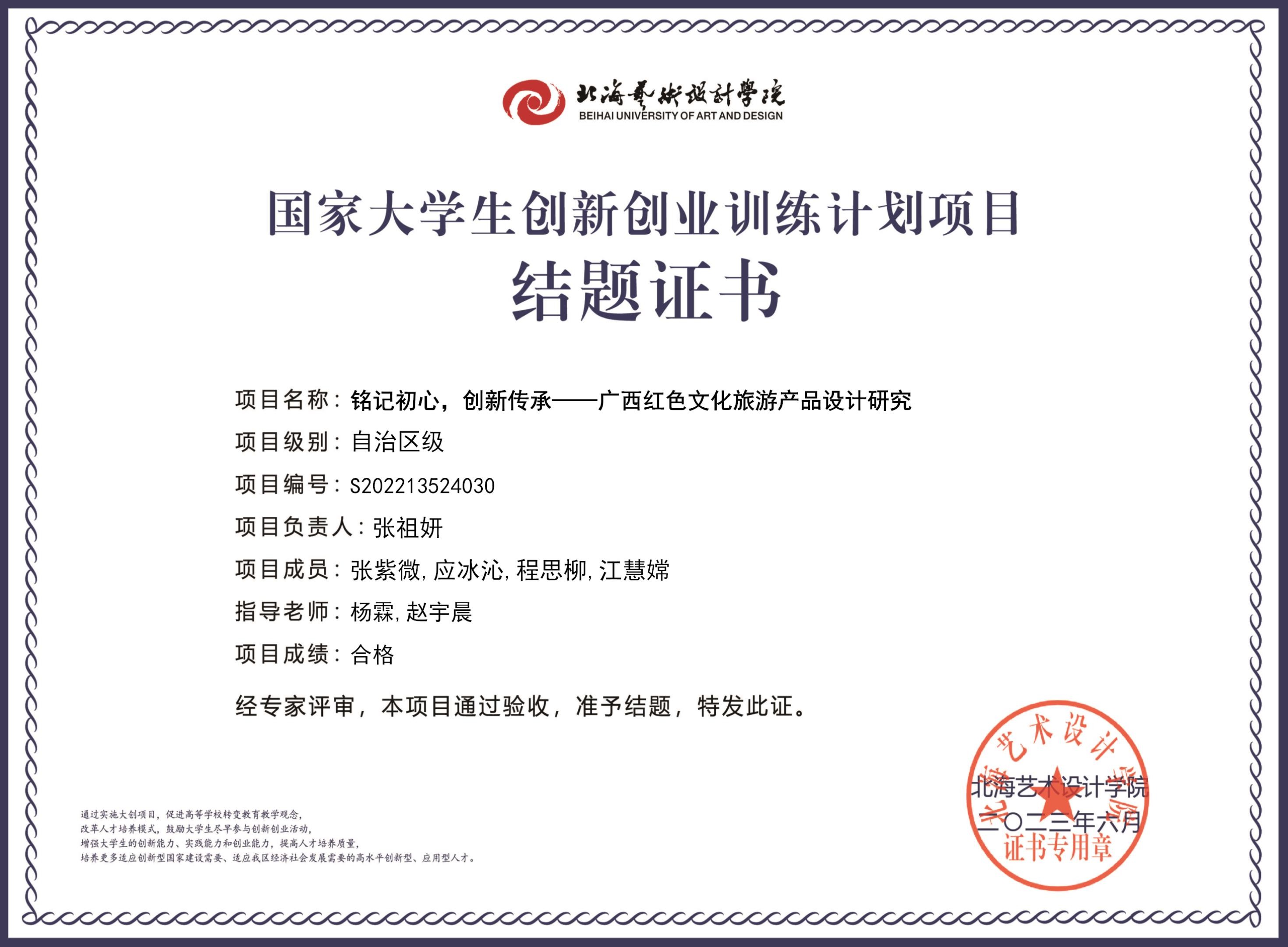 2023年大创项目结题证书(2022立项)