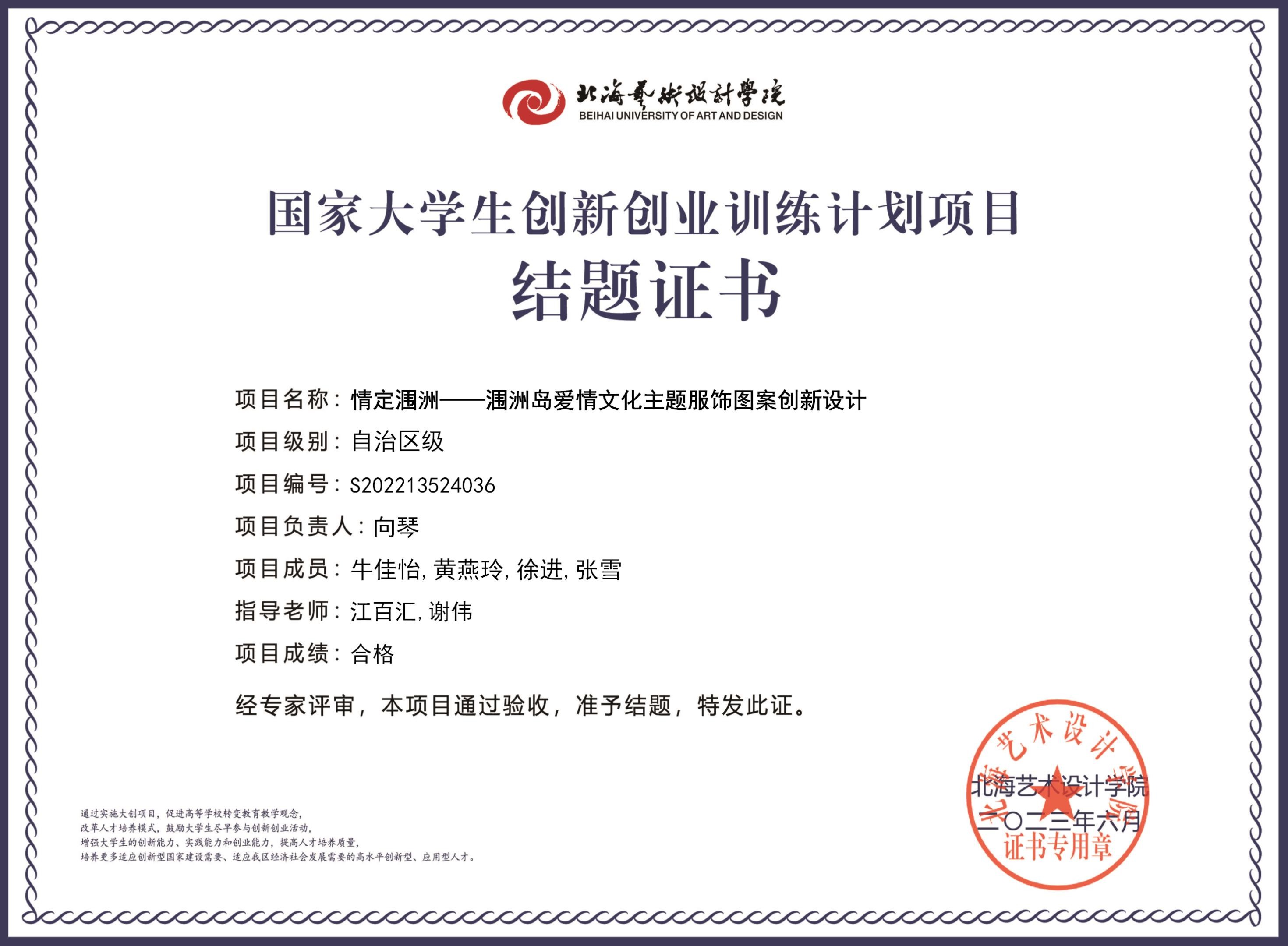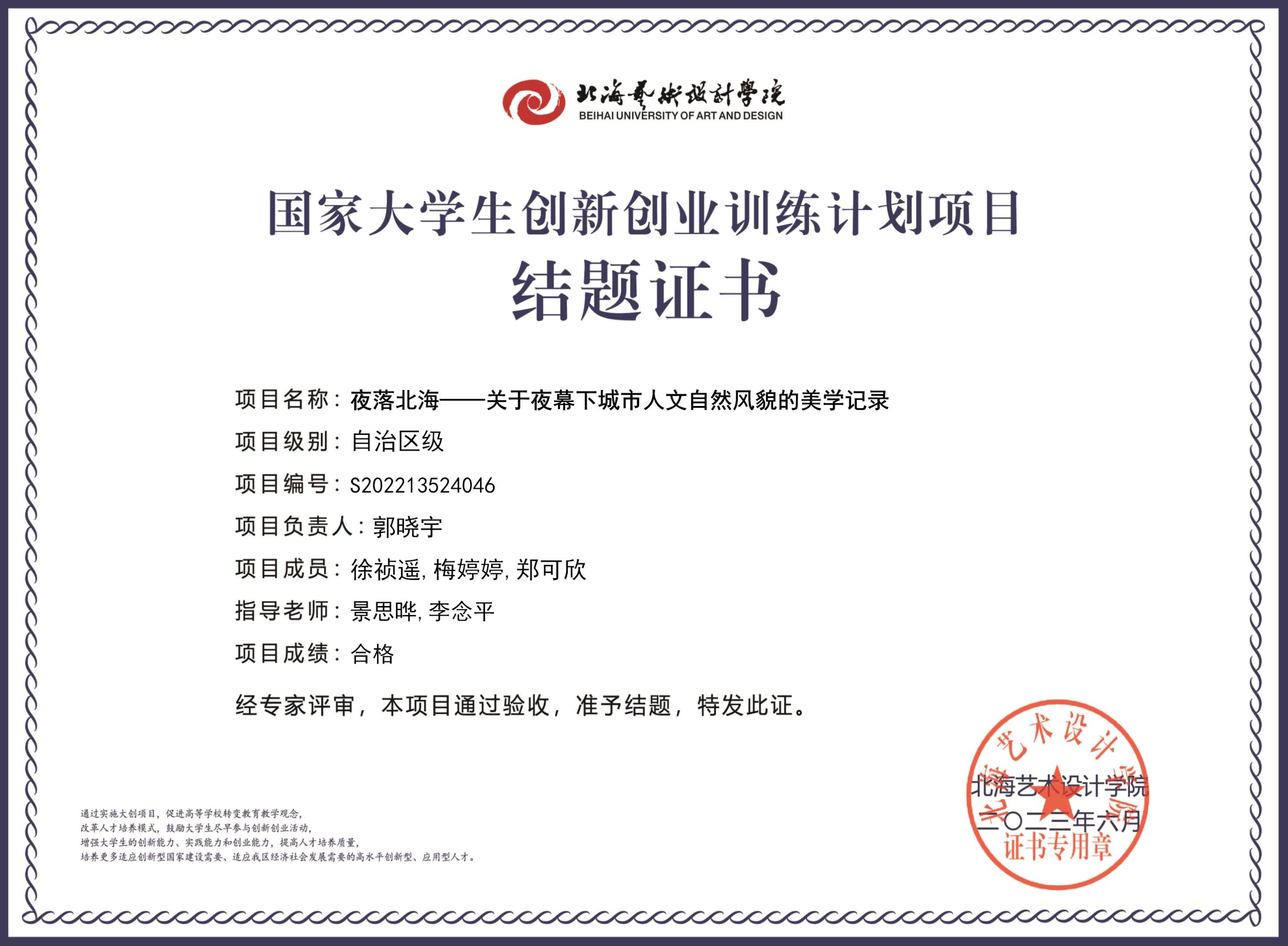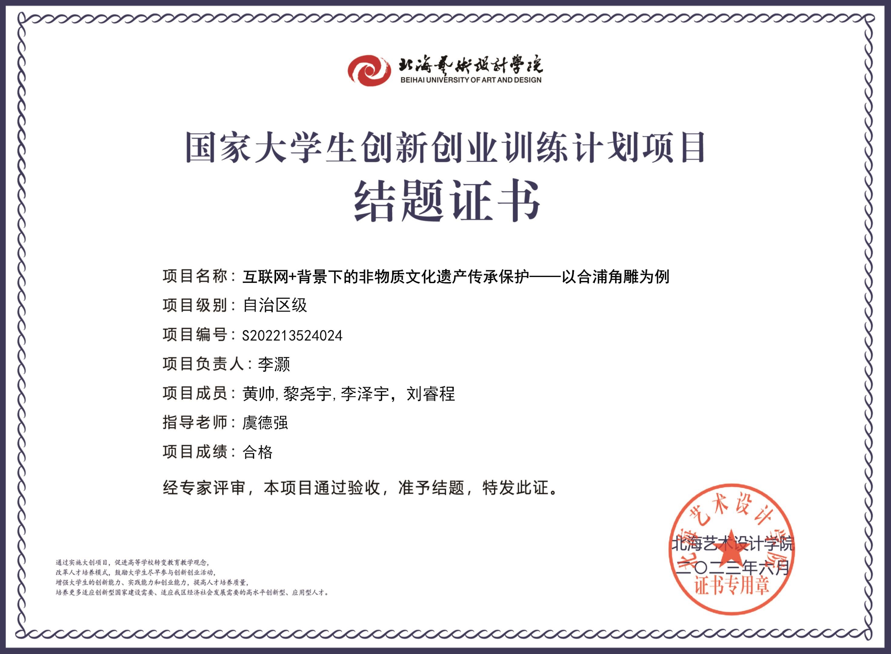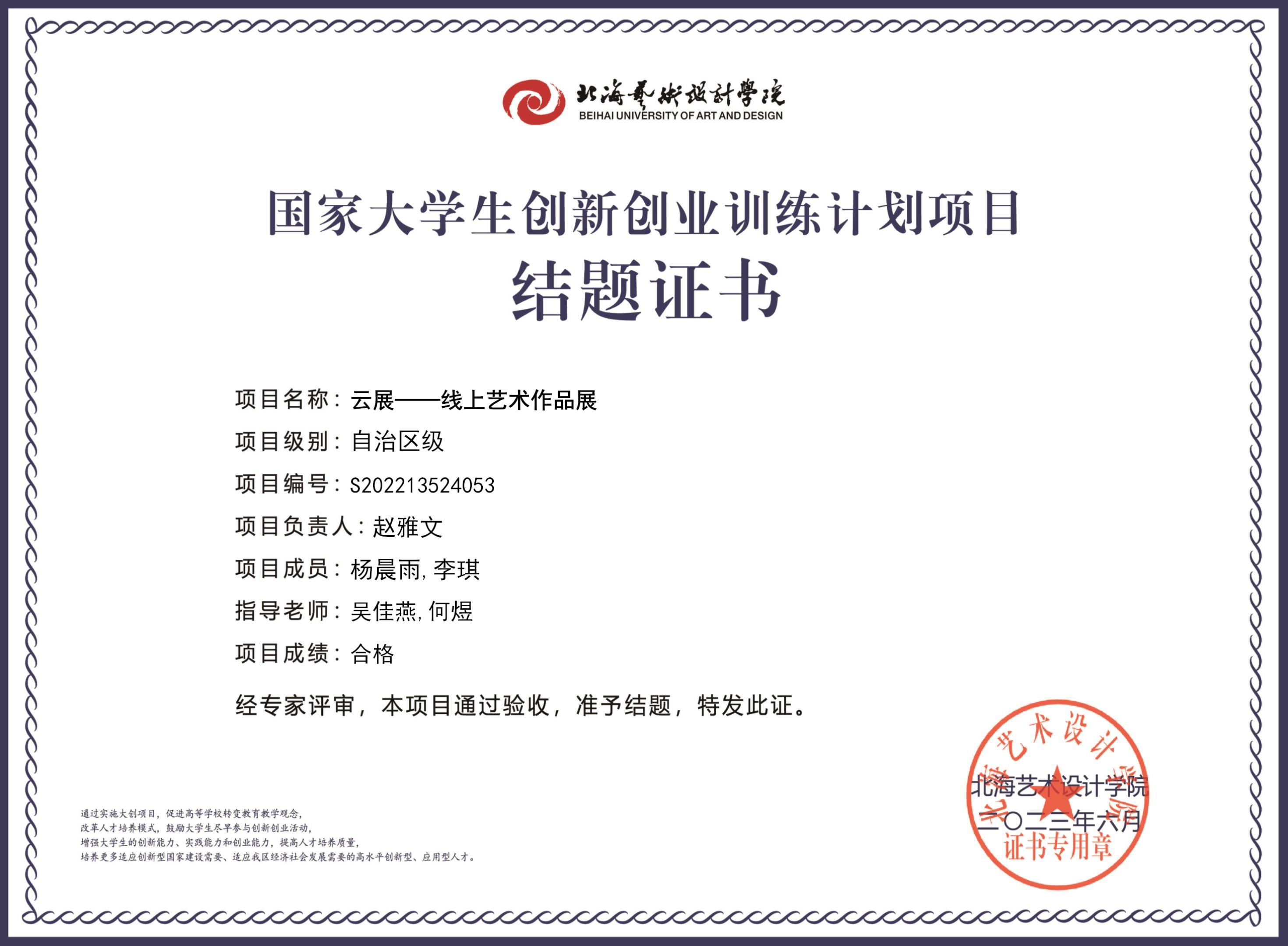 2023年大创项目结题证书(2022立项)
