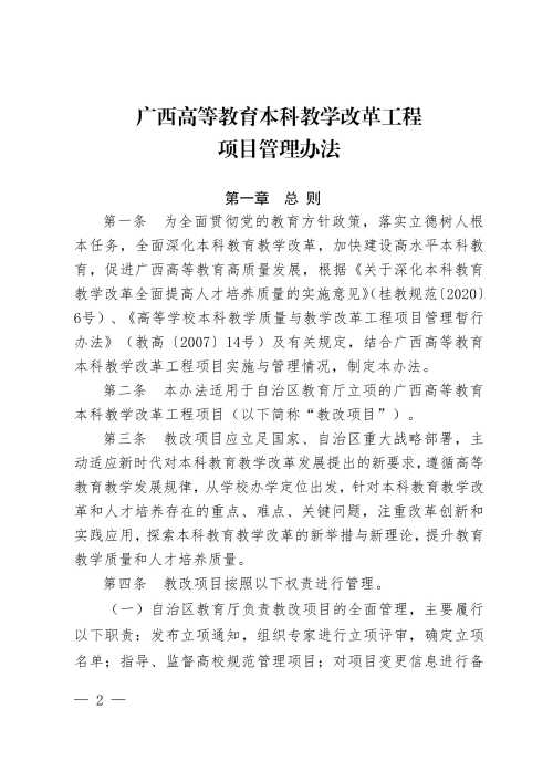 自治区教育厅关于印发《广西高等教育本科教学改革工程项目管理办法》的通知