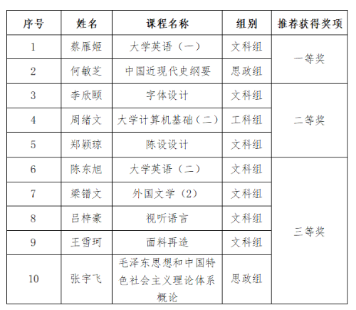 北海艺术设计学院第九届青年教师教学竞赛结果公示