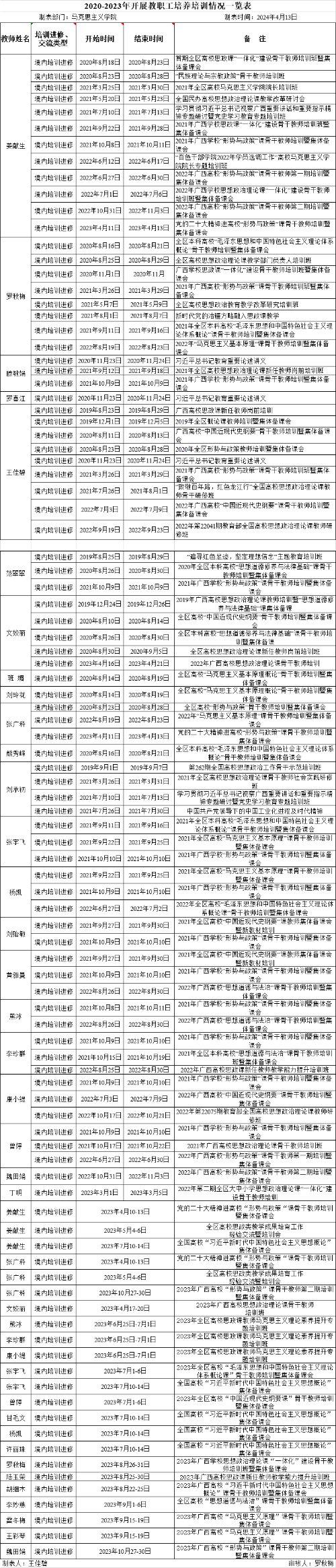 2019-2021年马克思主义学院教师培训进修情况一览表