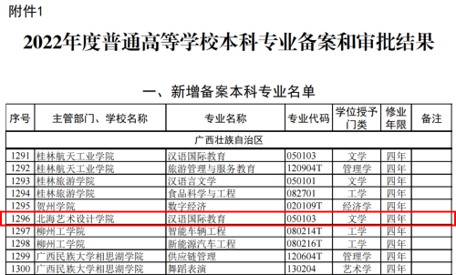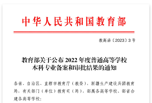 根据《教育部关于公布2022年度普通高等学校本科专业备案和审批结果的通知》(教高函〔2023〕3号),教育部对我校申请备案的汉语国际教育(专业代码050103)专业予以备案。
