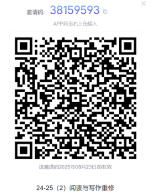 (十五)《阅读与写作》由文学院实施,重修学生加入学习通课群,群聊号为:3815-9593,群聊二维码如下: