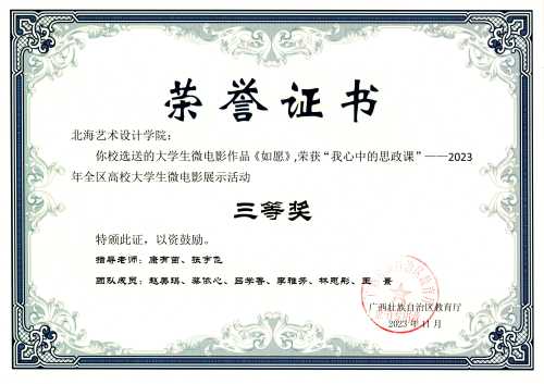 喜报:大学生微电影作品《回响》《如愿》《退伍不褪色》均荣获“我心中的思政课“——2023年全区高校大学生微电影展示活动三等奖