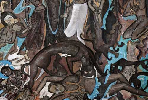 这幅壁画以其精湛的技艺和深刻的故事性,讲述了佛陀战胜心中恶魔,最终达到觉悟的过程。每一道线条,每一种色彩,都在无声诉说着佛教关于慈悲、智慧与解脱的宏大叙事。临摹之时,我努力捕捉其中的精神性与动态感,力图再现那段波澜壮阔的历史瞬间。