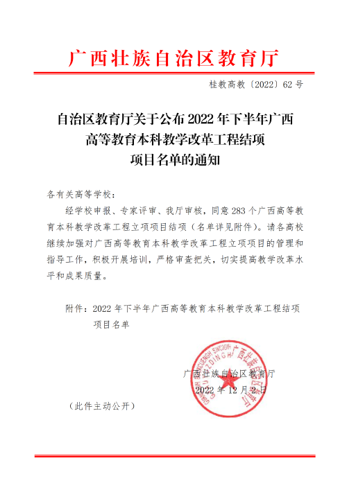 桂教高教〔2022〕62号自治区教育厅关于公布2022年下半年广西高等教育本科教学改革工程结项项目名单的通知