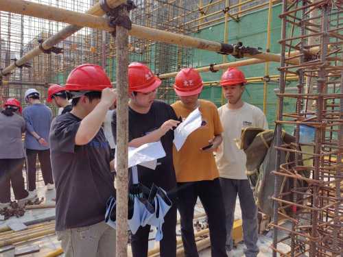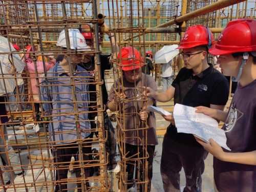 在施工现场,学生们首先听取了项目经理关于工程概况和钢筋施工要点的详细介绍。随后,在任课老师的带领下,学生们参观了钢筋加工区、绑扎区和焊接区等关键施工区域。他们仔细观察了钢筋的切割、弯曲、连接等施工工序,并就施工中的难点和疑问与现场工人和任老师进行了交流。