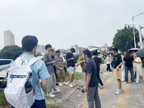 在考察现场,学生们纷纷拿出笔记本和测量工具,对空地的尺寸、形状以及周边环境进行了详细的记录和测量。他们不仅关注了地块本身的条件,还深入了解了周边商业设施、人流走向以及消费者需求等关键信息。