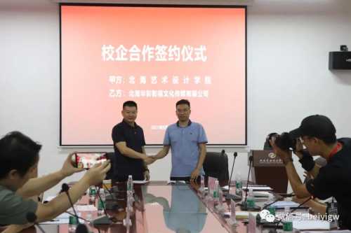 会上,动画与传媒学院分别与南宁四叶草文化传播有限公司北海华彩影视文化传媒有限公司、北海龙腾半岛网络技术有限公司、广西南珠宝宝科技有限公司、广西蔓延影视传媒有限公司签订了校企合作协议。