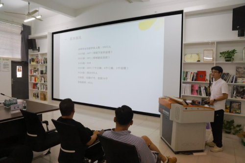 教研室主任吴锡红对本学期的工作成果进行了详尽的汇报。他详细阐述了动画专业在课程材料的创新、毕业设计的精心指导、教学活动的丰富多样、参赛作品的成绩以及科研项目的进展等方面取得的成效,展示了动画专业在教学内容和方法上的不断探索与创新,以及对学生全面发展的高度重视。此外,吴主任还总结了外聘教师的教学工作和校企合作的成果,展示了动画专业在实践教学和校企合作方面的积极进展。