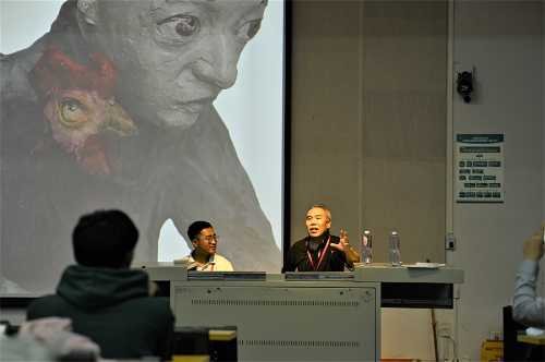 王少军教授通过展示他个人的一系列雕塑作品,讲述作品创作过程中的心路历程及作品对自身发展的影响,从而深入探讨雕塑艺术,说明具象写实雕塑的作用和意义。王少军教授表示写实艺术永远具有生命力,存在于人类社会的需求之中,他在此基础上尝试不断创新和探索,从中找出更新的意义,进而奠定了“角儿”这一艺术观念的基础。在雕塑技艺的基础分享上,他鼓励大家要脱离雕像写实的功能,用雕塑的语言超越现实的边界,将雕塑的灵魂可视化。
