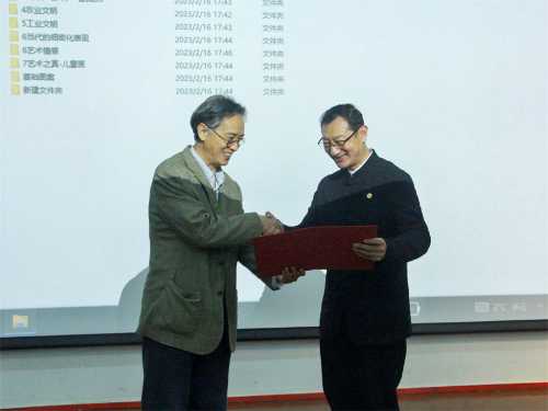 讲座开始前,卢新华校长为张树新教授颁发聘书,聘任张树新教授为我校设计艺术学院教授。