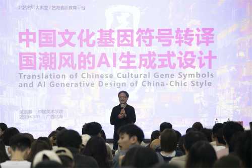 3月11日晚,于我校西校区伦理楼107,中国美术学院教授、博士生导师范凯熹为我校师生带来一场题为《中国文化基因符号转译与国潮风的AI生成式设计》的精彩讲座,讲座由设计艺术学院副院长白建强主持。