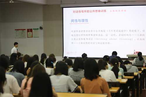 随后,谭武军教授从四个角度全方位论述“文科的‘黑’科技——思想”这一课题,指出文学教育的四个新内涵,并提出写作新要求所遵循的四大原则。谭教授通过全过程写作整体性思维训练、思维降解、思想锋芒以及对于对话性写作的公共思维训练等方面的讲解,表示写作不能局限于对表达技巧的模仿训练,而是要作用于主体建构的底层结构,实现对人的生命塑造和思想锤炼。中文教育,要探索以过程性写作打破思维惯性,以探究性写作激发思维创造,以对话性写作建构公共理性,从而实现人才培养的高阶维度跃升。