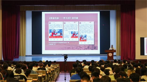 讲座伊始,王伟教授结合个人经验,以连环画的创作为切入点,分享了艺术实践的经验和领悟。他表示,人有目标,不会迷茫。相比较于浑浑噩噩虚度光阴,那些明晰自己为什么而活,踏实朝着目标前进的人,才能让自己行走的每一步都有价值。随后,王伟教授就关于中国文化主题原创内容展开讲解。他特别强调艺术创作要有发现美的眼睛,在中国传统文化中寻找灵感,还需给自己设立每日的目标,沿着既定的轨迹前行,在追逐目标的过程中不断提升自己。