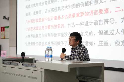讲座伊始,海建华教授系统介绍了室内设计的特点,室内设计是一种独特的空间形态艺术,室内空间形态由不同的几何形态构成,通过空间几何形态造型的组合变化来创造美,表现美,进而实现其艺术审美的价值和意义。