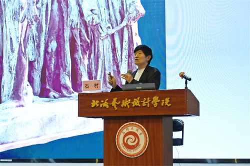 讲座伊始,石村教授通过提出问题“什么是主题性创作?”引发现场师生思考和讨论,并引入讲座授课内容。石村教授通过古今中外世界各国的艺术作品案例解析,指明了艺术创作应强调主题的社会功能,反映国家意志和主导意识,塑造国家形象,展现历史与民族精神。主题性美术创作的主题表达要突出时代主旋律,体现社会主义核心价值观,传递正能量;要追求真、善、美的艺术永恒价值,以美化人;要追求思想内容与完美艺术形式的统一。