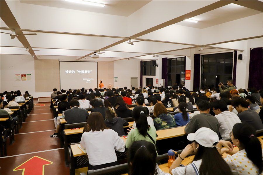 2020 年11 月12日晚于我校⻄区伦理楼107,湖南师范大学美术学院姜松荣教授为我校师生带来⼀场题为《设计的伦理原则》的精彩讲座,现场座无虚席,本次讲座由副校长王斌主持。