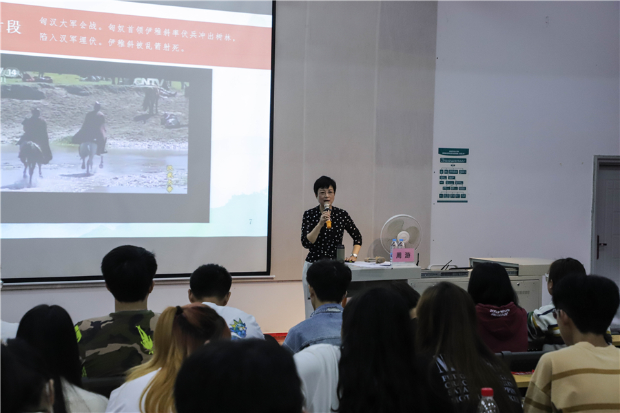 周游教授以边塞诗为例,讲述环境也是感情的一种表现,边塞诗人的爱国情怀值得赞颂,希望同学们尊重历史,将军魂、爱国之情融入心中,认真领悟诗魂,了解作品精神。以情发音。