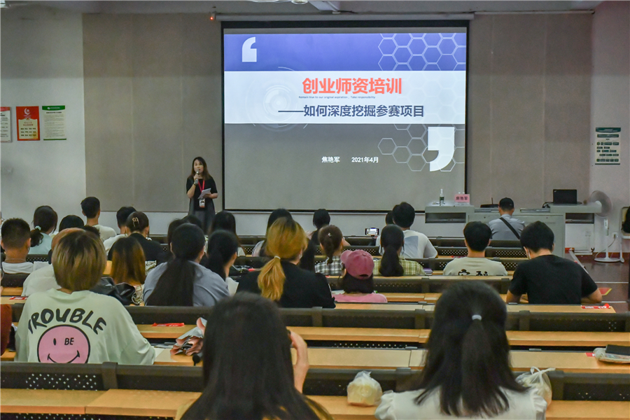 2021年5月14日于我校西校区伦理楼107,云南经济管理学院创新创业学院院长焦艳军为我校师生带来题为《中国“互联网+”大学生创新创业大赛经验分享》的精彩讲座。讲座分《如何深度挖掘参赛项目》、《梳理商业模式,凸显项目亮点》上、下午两场,吸引广大师生前来聆听。本次讲座由我校创新创业学院常务副院长云曼主持。