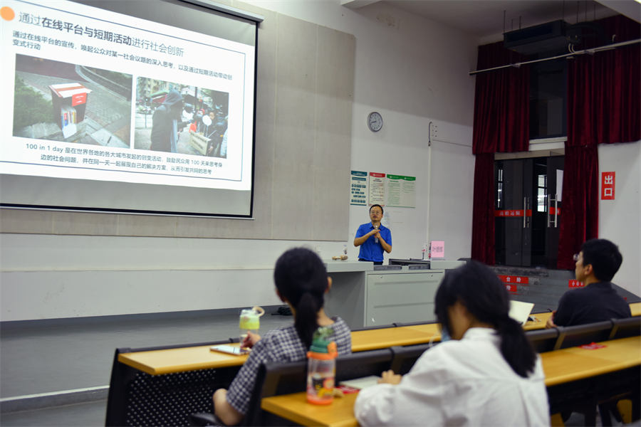 讲座中,叶教授讲述了社会创新内容,社会创新是一种新的想法(产品,服务或模式)能在满足社会需求的同时,创造新的社会关系。可以理解为对某个社会问题的新颖的解决办法。此解决办法效益更高,更加可持续,可以为整个社会带来效益。