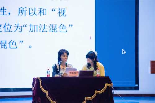 田森恭子教授在混色的讲解中,阐述了人们日常所见的色彩空间通常由三种基本色组成,称为“三原色”,以不同比例将原色混合,从而产生其他新颜色,就是混色,其中混色还包括加法混色和减法混色。田森恭子教授总结归纳谢弗勒尔的配色技法内容并解读了XYZ色彩体系中三种颜色的表示方法。