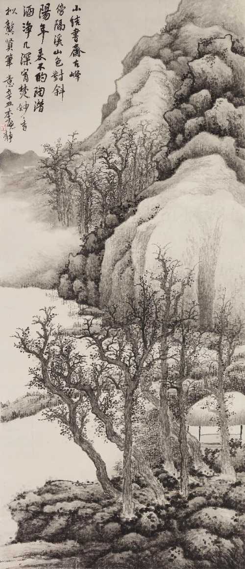 李晓静《临龚贤隔溪山色图》纸本水墨 167cm×71.5cm 2021年