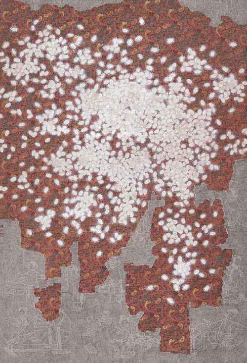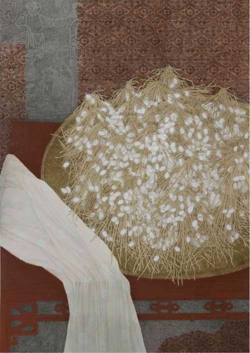 陈建江 《蚕诗桑歌》2014年 纸本矿物 138cm × 200cm