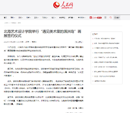 人民网:北海艺术设计学院举行“遇见美术里的涠洲岛”画展签约仪式