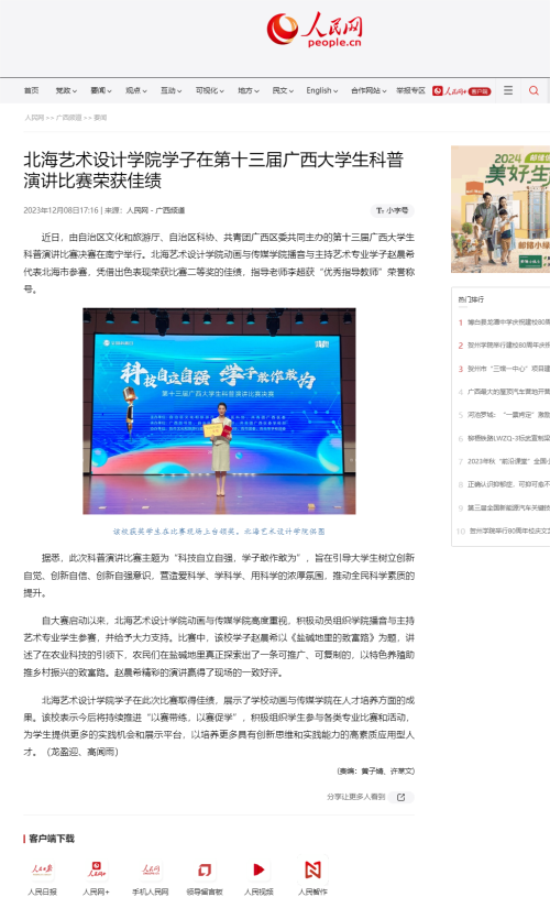 人民网:北海艺术设计学院学子在第十三届广西大学生科普演讲比赛荣获佳绩