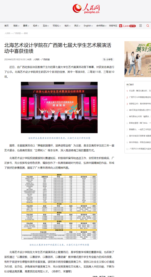 人民网:北海艺术设计学院在广西第七届大学生艺术展演活动中喜获佳绩