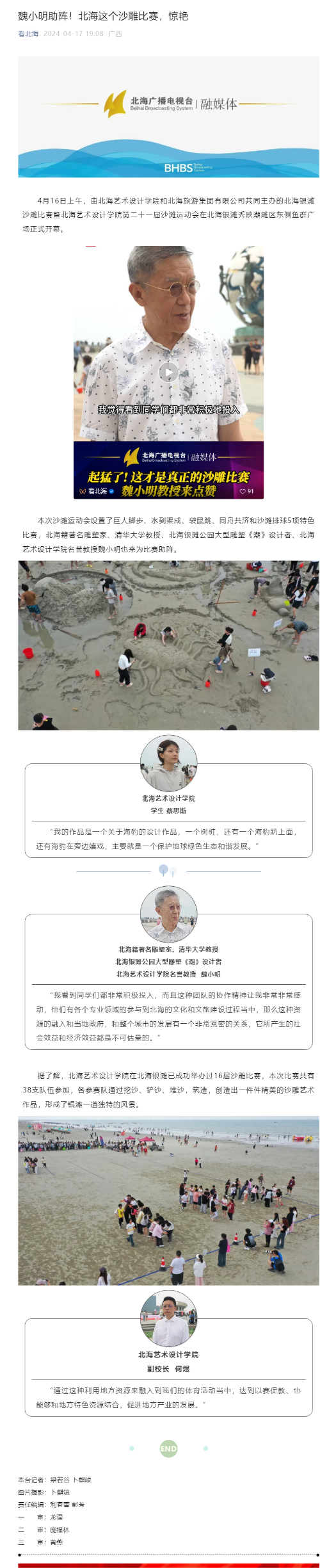 南国早报:青春赛场,艺术盛宴!数千名青年学子北海银滩创作艺术沙雕,获知名艺术家助阵