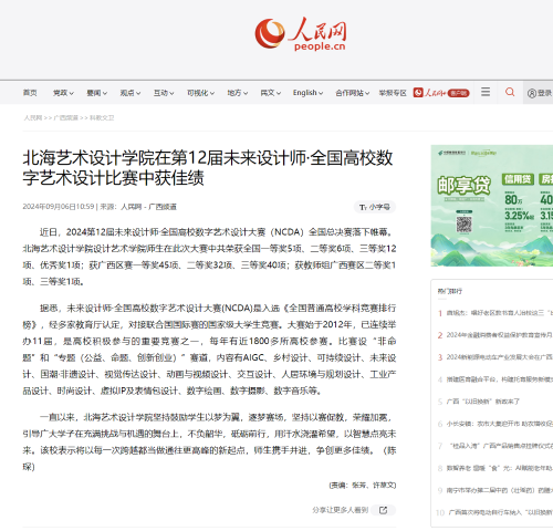 人民网:北海艺术设计学院在第12届未来设计师·全国高校数字艺术设计比赛中获佳绩