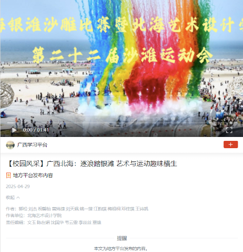新闻报道网址:https://article.xuexi.cn/articles/index.html?art_id=3304722736245318710&item_id=3304722736245318710&cdn=https%3A%2F%2Fregion-guangxi-resource&study_style_id=video_default&source=share&share_to=wx_single